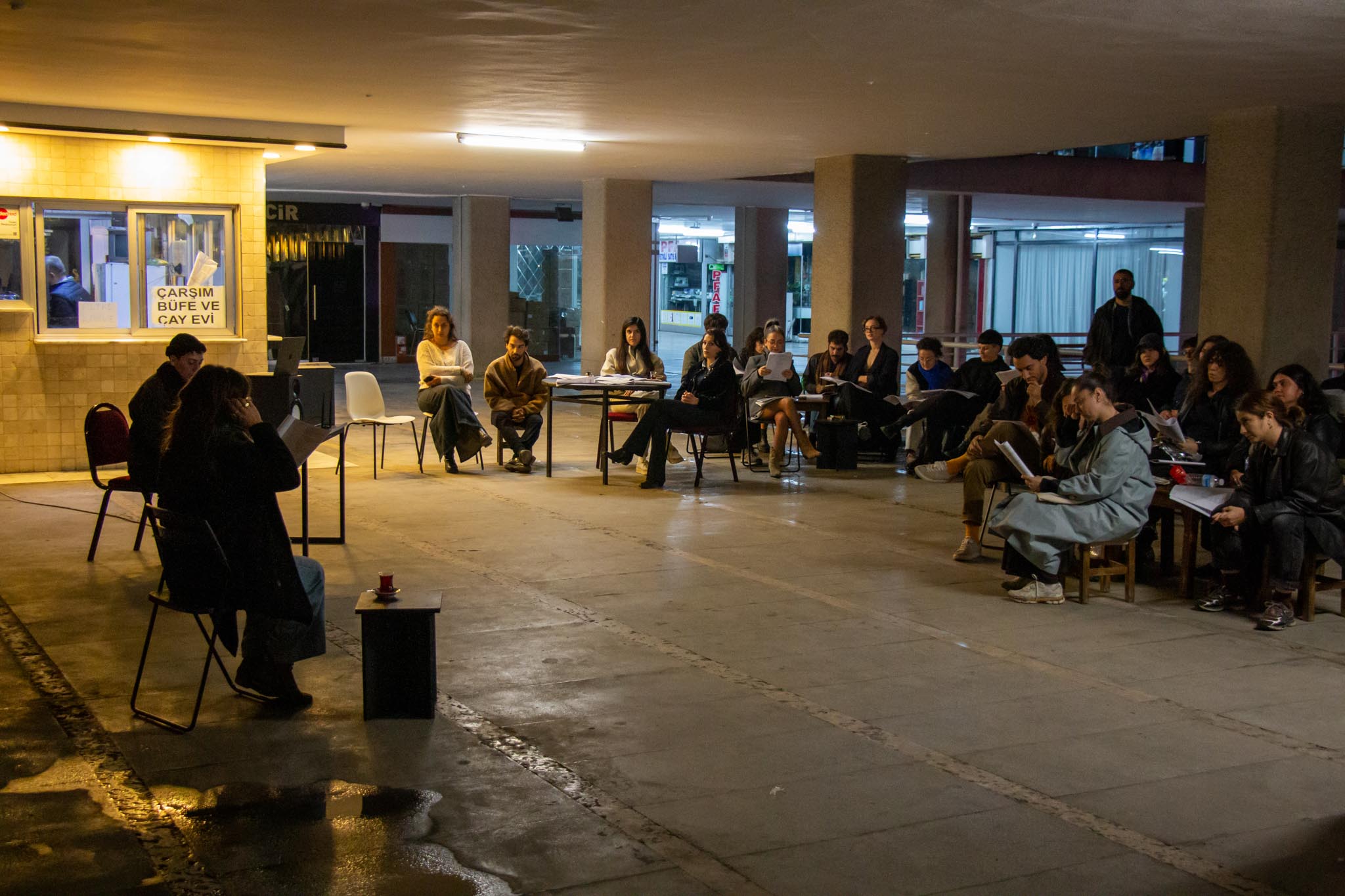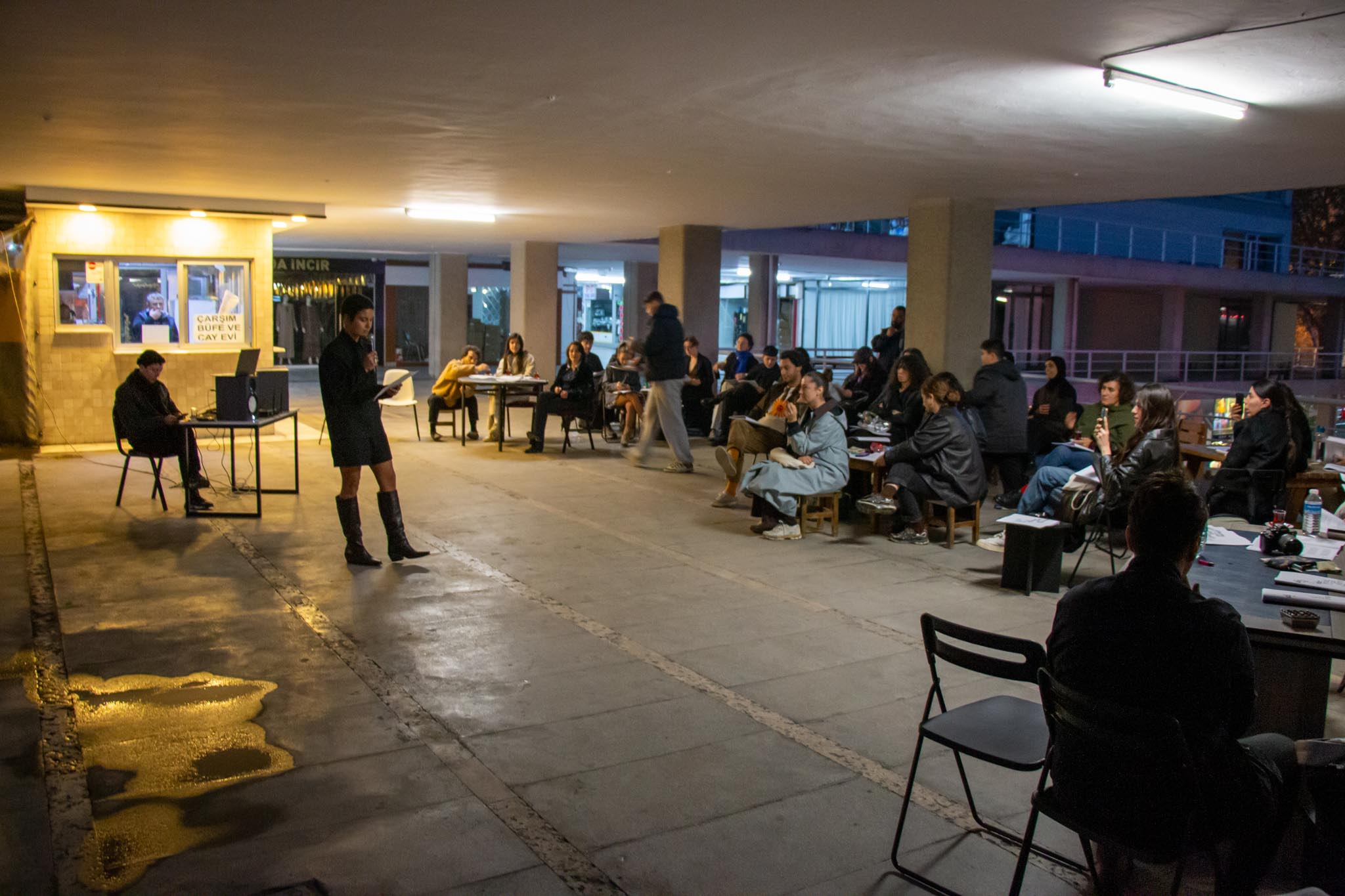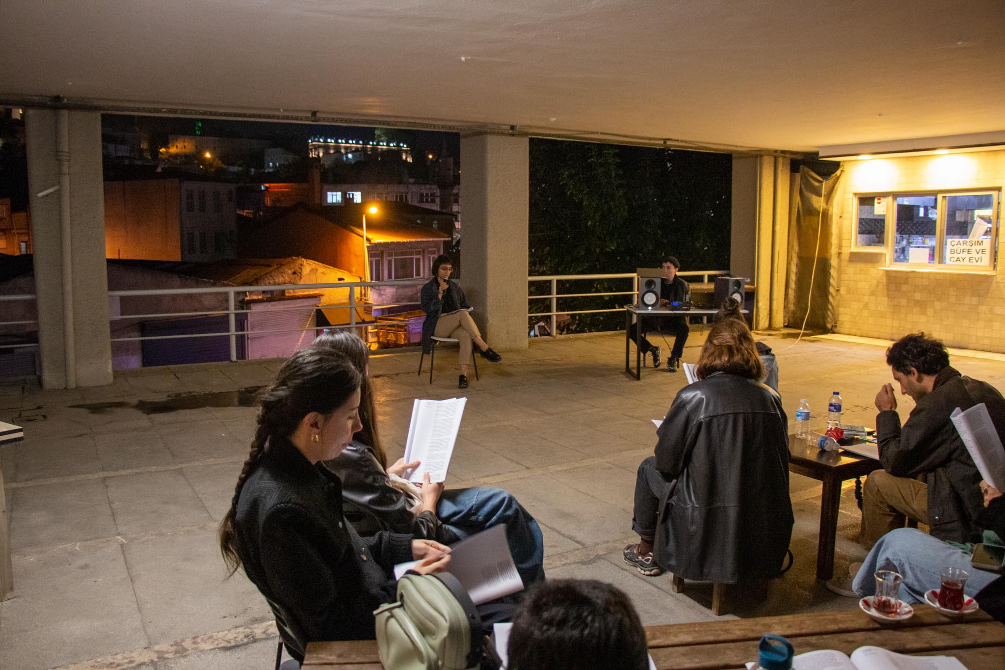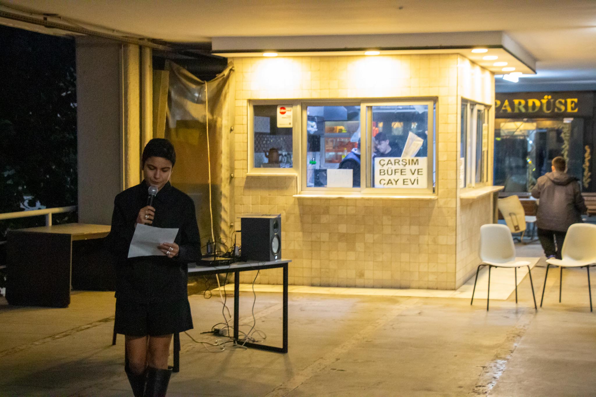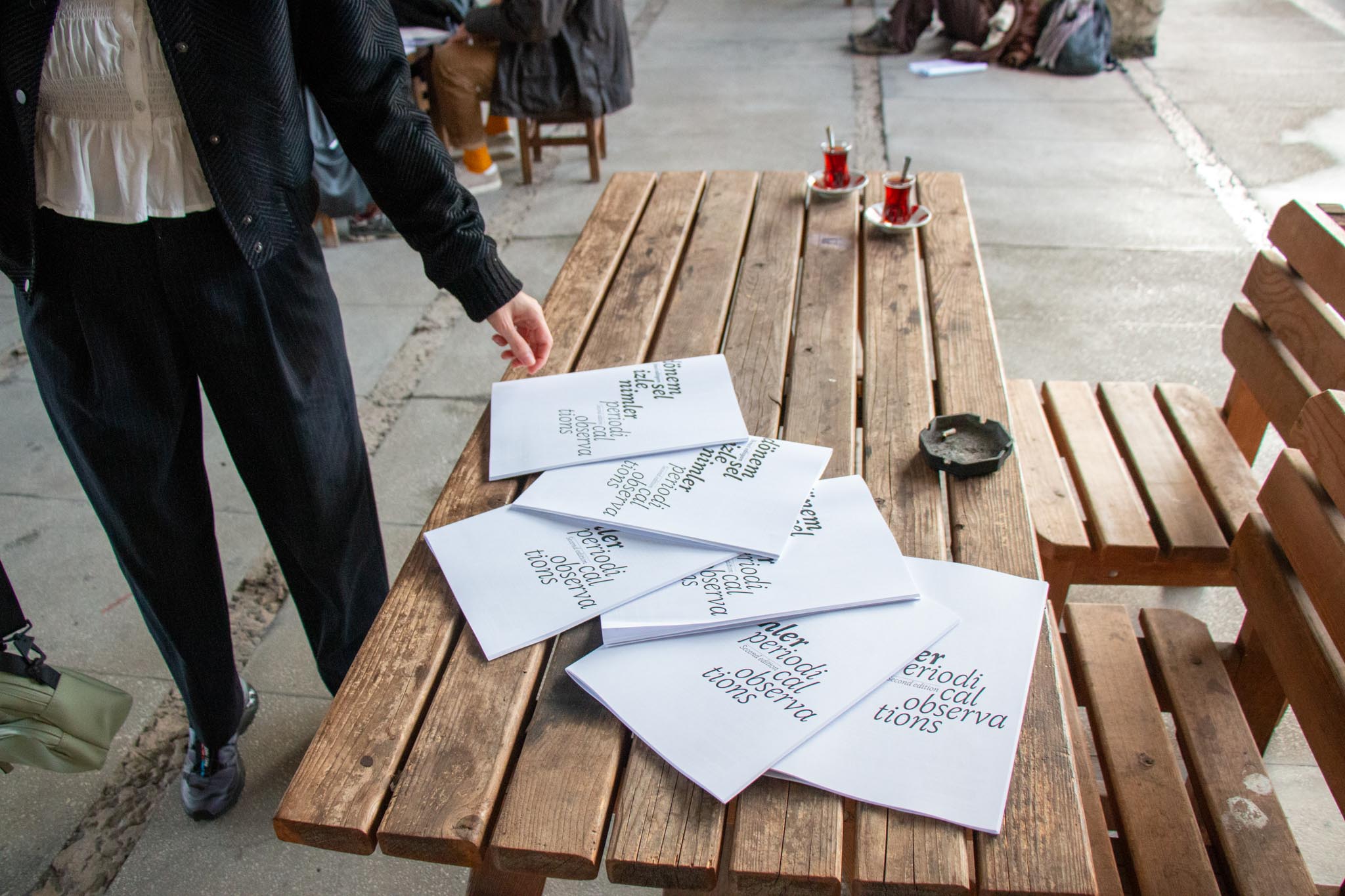 Periodical Observations / Dönemsel İzlenimler is an editorial project which presents site specific texts and performances. This edition was presented at a kiosk on the second floor of IMÇ block 5, reflecting on the culture of çay, the modernist legacy of the building, and the broader context of the city. The launch event included readings by contributors and the presentation of the publication, which was available for free on a limited run.